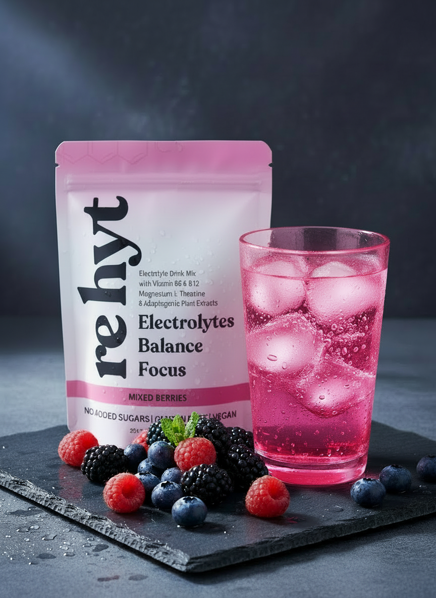 Electrolytes, adaptogens, nootropics, vitamins and botanicals